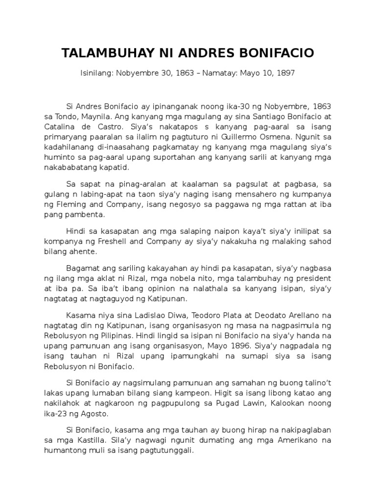 Talambuhay Ni Andres Bonifacio Pdf